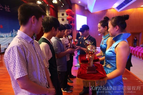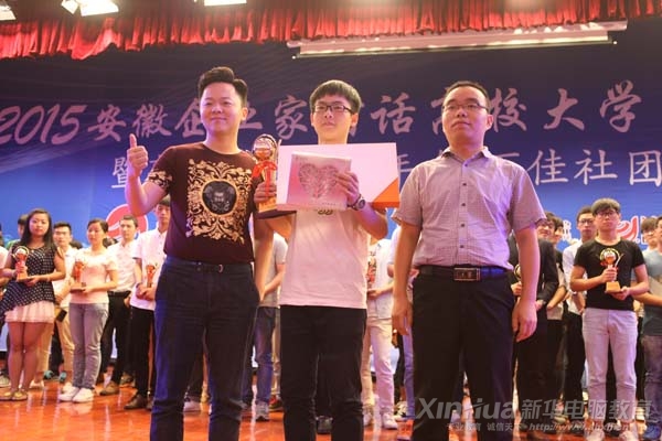 安徽新华电脑专修学院学生处主任和企业代表为冠军社团颁奖