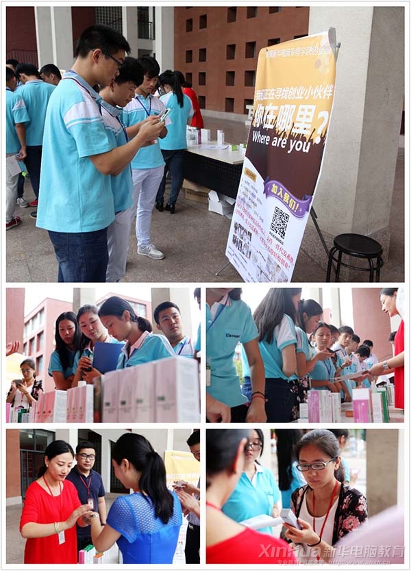 安徽新华电脑专修学院综合楼下围了一圈圈热情澎湃的小伙伴们,小编怀揣着满满的好奇心伸过脑袋一看,原来是由安徽淘无忧电子商务有限公司主办、新华网商达人社协办的“寻找创业伙伴”活动,这也是大安新学子自己的娇芬迪天猫店在校内O2O大促销哦。
