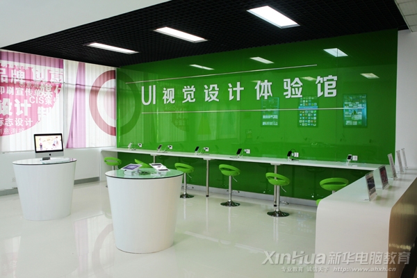 作为互联网教育专家,安徽新华电脑专修学院始终站在互联网教育第一线。将设计思路和应用实践作为广艺学科的核心课程,集结10余年一线广告传媒设计实践经验潜心研发;2015年更是斥巨资新建UI视觉体验中心,对设计的产品进行改造升级。它涵盖平面设计、网页设计与移动界面设计三大领域。不仅拥有高质量的平面输出设备,还包括多平台的人机交互体验区,包括手机体验区、平板体验区以及WEB体验区三个方面。