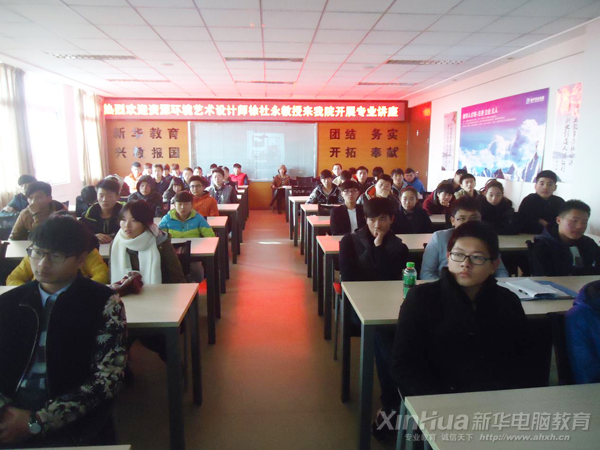 11月27日下午,安徽新华电脑专修学院环境艺术专业的学子们来到综合楼六楼培训部,聆听了著名室内设计师、硕士讲师、安徽农业大学园林与艺术系环境艺术教研室主任徐社永先生的《传统文化与室内设计》环境艺术专题讲座。