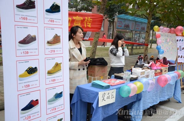 安徽新华电脑专修学院里热闹非凡,学院创业班的学生发起电商文化周的爱心义卖活动。 爱心义卖活动以创业班级为单位,由创业班级学生把自己创业物品带到学校并由班级义卖小组筹划义卖方案、义卖宣传和商品定价。整个义卖现场各种形式的宣传推销不绝于耳。每一个班级的摊位前都摆满了学生们带来的各种各样的物品,日用品,鞋子、化妆品、玩具等等。