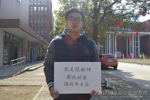影视动漫游戏设计师专业,家人也很支持他,他对自己说只要每天努力一点收获就会多一点。希望他可以如愿以偿在我们美丽的新华学到他想学的东西!