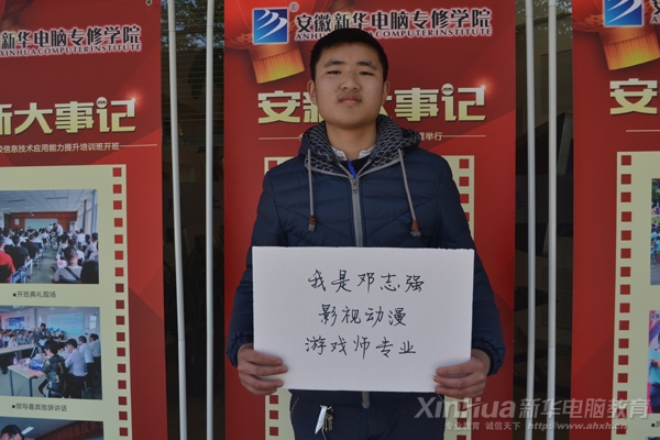 来自江西省宜春市奉新的邓自强,今年17岁。喜欢打游戏的他目标很明确的选择了影视动漫游戏设计师专业,他想利用自己的兴趣把动漫游戏认真的学好然后自己就可以创作属于自己个性的游戏,在梦想的感召下,他来到了这个追梦的舞台——