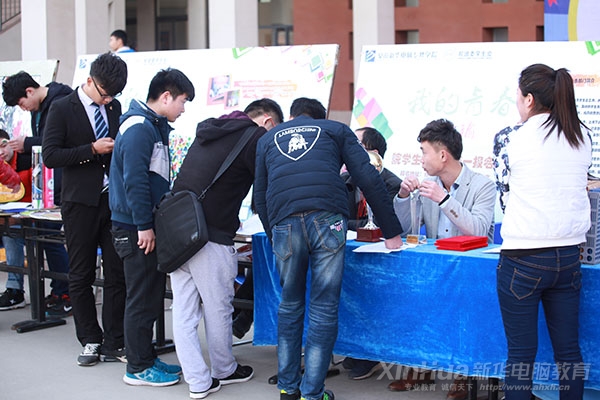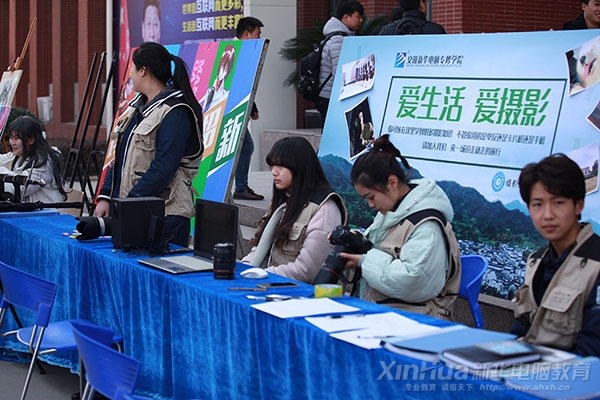 今天的安徽新华热闹非凡,那边歌唱比赛如火如荼,这边社团招新人潮涌动,学生会、动漫社、向日葵记者团、摄影协会、广播站、书画篆刻协会、广告艺术协会等百花齐放,使出挥身解数招揽学弟学妹们进社。面对如此丰富的大学生活,你不心动吗?快来加入新华IT大学吧!