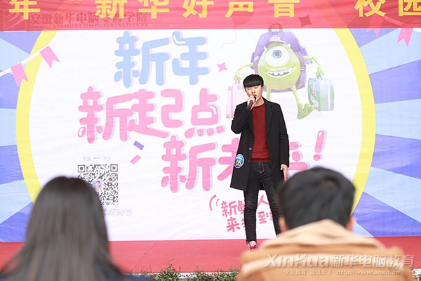 用歌声点亮梦想,用梦想照亮明天——原来是安徽新华电脑专修学院正在举行“安徽新华青春季:新华好声音”校园歌唱比赛!现场气氛炽烈!八仙过海,各显其能。那厢你方唱罢,余音绕梁,三日不绝;这厢我刚登场,缓缓抒情,歌声动听。评委们听得认真,选手们唱得响亮:一曲《同桌的你》让我们忆起了那青涩韶华;一首《翅膀》带你飞向梦想的彼岸;一支《你》仿佛让我们来到了遥远而又辽阔的草原„„通过激烈的角逐,最终有8名选手进入了复赛。此次活动一方面是为了丰富同学们的日常文化生活,给同学们的生活增添情趣,另一方面更是安徽新华给新生学子的一份礼物。这里是勇敢者展现自我的舞台,这里是自信者显示风采的天堂。试问谁将更进一步,成为众人寻觅的最动听之声呢?让我们相约复赛!