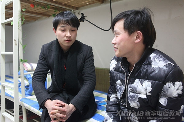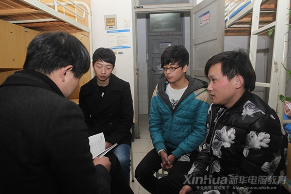 小王的老家来自亳州,第一次来到合肥,班主任亲切的跟他拉起了家常,一句家乡话立刻拉进了两个人的距离。班主任贴心的给宿舍几位同学几句叮嘱,“学校的饭菜还吃的习惯吗?”“有什么困难就知道跟我说哟!”慢慢的,大家都打开了心扉,聊的不亦乐乎!聊到动情之处,小王充满感情的说:安徽新华就是我的第二个家!这里的人都像家人一样亲切!