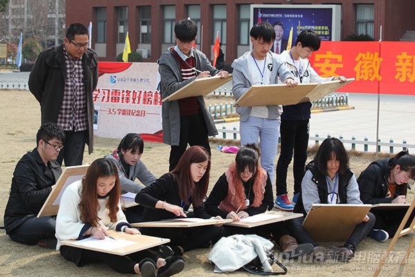 小编在人群中也发现了不少高颜值的实力派选手,咱们安徽新华真是卧虎藏龙。一张素纸,一根铅笔,不一会,一张雷锋的肖像就栩栩如生的跃然纸上,精雕细琢,反复修改,这不正是我们安徽新华学子追求的学习精神吗? 反复钻研,反复练习,直到得到最完美的作品。