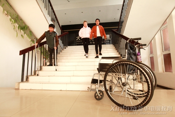 好在安徽新华电脑专修学院有如此多耐心敬业的老师、有如此多乐于助人的同学们。老师了解到刘道济学习进度慢的情况,主动在课下和自习时间耐心指导,同学们也常常陪伴他聊天说笑。