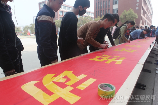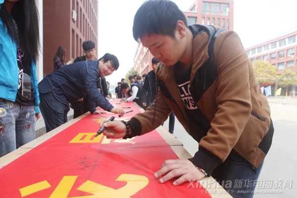 值此“文明礼貌月”,为了提高学生们文明礼仪风范,更好的展示我院学生的文明风貌,2016年3月22号,在安徽新华电脑专修学院综合楼前,一场甚为壮观的“文明新华人签名”活动火热展开。