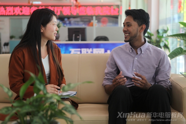 “The school is very beautiful and very modern,really very modern!”提及安徽新华电脑专修学院校园,Nabeel Rajub赞不绝口,他初次来安徽新华校园时,参观了学校的实训基地、创业中心,并且亲身体验了学校的高科技感应设备,很是赞叹。第一次来的时候不由自主就拍了好多照片,后面分享给周围的朋友看,朋友也都说学校很棒很现代化!