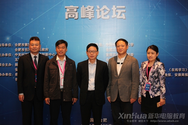 合肥市包河区副区长宋华龙、中关村互联网教育创新中心董事长姜平、北京中关村智慧互联网教育科技投资管理有限公司董事长汪大海、互联网教育商会会长张爱志、新华教育集团副总裁沙旭、教育部-中国移动联合实验室MOOC中心主任王涛、乂学教育创始人王枫、北京大学企业与教育研究中心主任吴峰、华图教育联合创始人于洪泽、南京师范大学数字化教育评价研究中心常务副主任朱雪梅、中国高科教育事业部副总经理张有明、创客总部合伙人尚冠军、安徽新华电脑专修学院院长吴元红均参与了本次盛会,共同探讨互联网变革教育的时代背景以及实践路径。