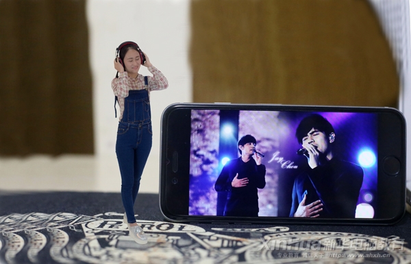 她世界·心语: “我身旁的这个手机可真大呀!还好横着放,不然我可没它高了。哦,对了!你猜我能抱得动它吗?嗯~介个~介个~好像真的有些难呢……嘻嘻,不管了,我才懒得抬它呢,快听!我的偶像在唱歌呢!太棒了,不由自主陶醉其中……”