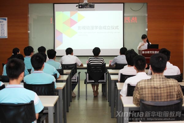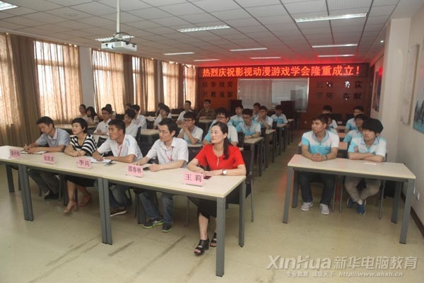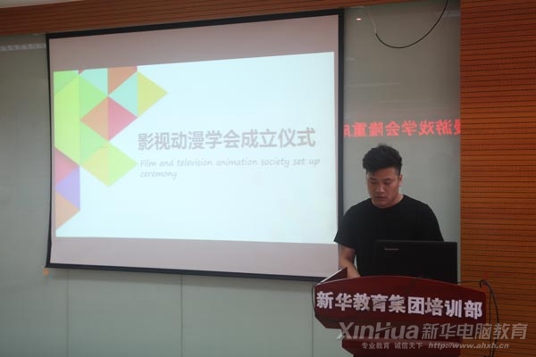 2016年6月22日在学院开启影视动漫学会成立仪式。安徽新华专修学院教务处主任张凯星、互联网学院副主任李兵、艺术学院副主任朱叶伟、网络工程学科负责人邵春林以及影视动漫游戏学科负责人王莉参会。