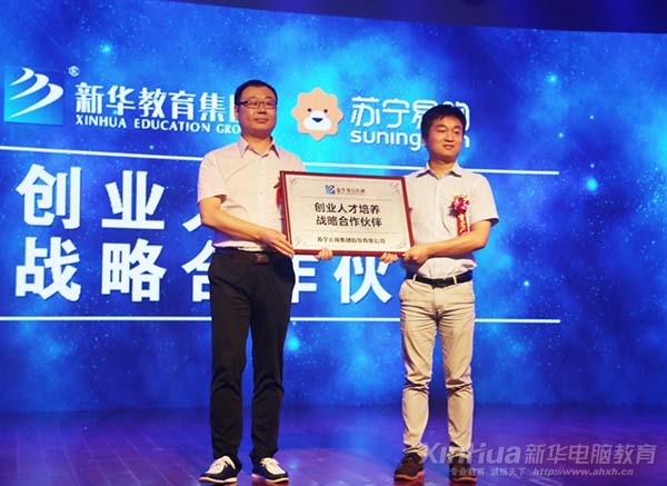 苏宁云商集团股份有限公司授予新华教育集团”创业人才培养战略合作伙伴”荣誉牌匾