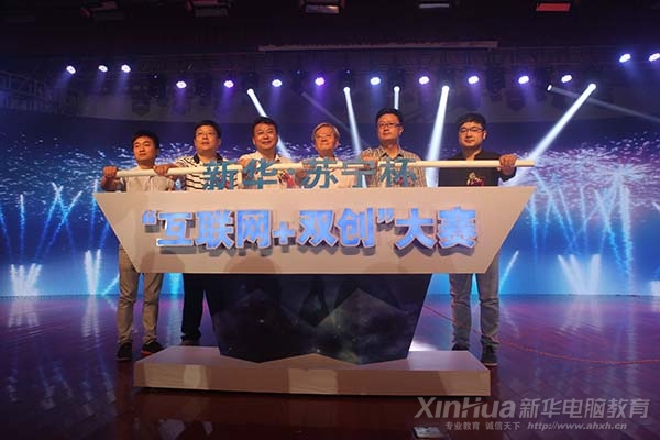 与会嘉宾共同登台,点亮“首届新华·苏宁杯互联网+双创大赛”启动仪式