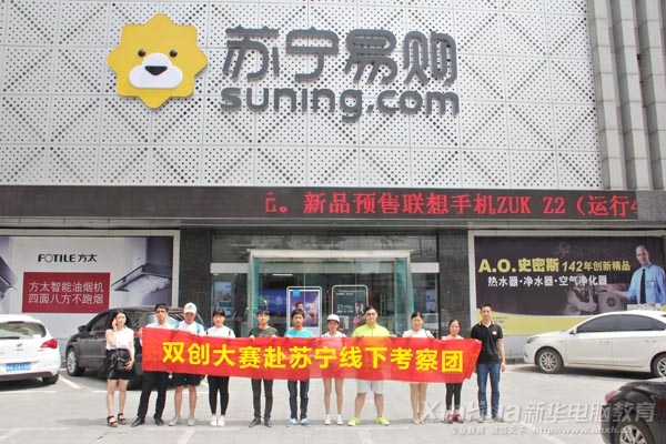 安徽新华电脑专修学院华夏君老师带队,与常婷婷、高星、耿洪亮老师一行携双创大赛参赛学生去苏宁易购参观考察。进入卖场,参观队员都被琳琅满目的商品缭乱了双眼,眼神和动作都在透露着一个信息:如何把看到的产品完美地在线上展示宣传推广。