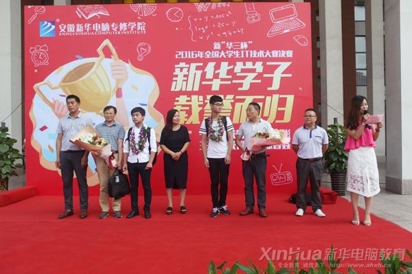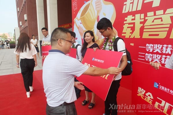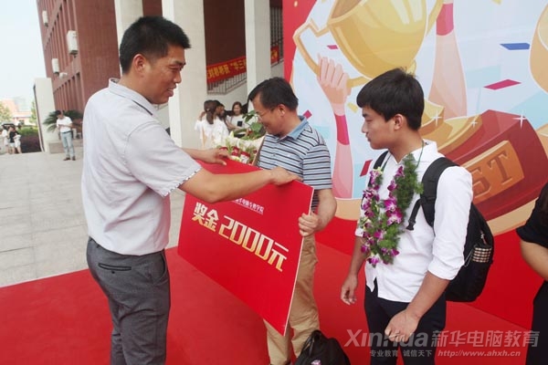 安徽新华电脑专修学院院长吴元红的鼓励和嘉奖。本次表彰仪式,获奖学子的母亲也来到了现场,当主持人问到对于孩子获奖有什么感想的时候,这位母亲满脸欣慰的说:“感谢学院,现在我更加肯定自己把孩子送到