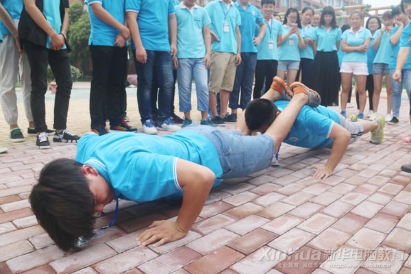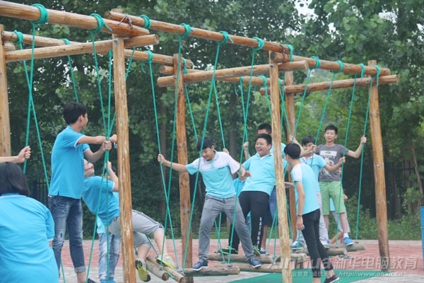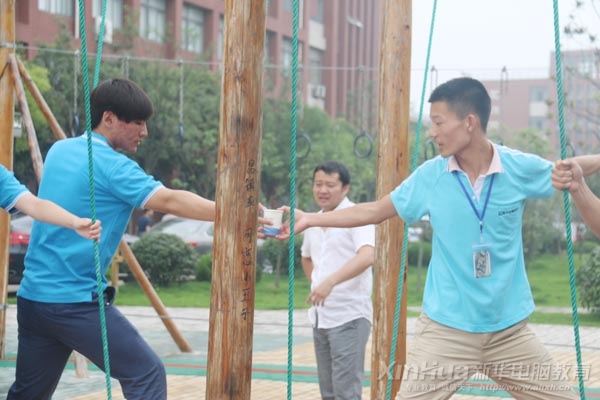 取水过程中,有的同学在身体快要掉下去的危急时刻,牙齿却还紧紧地叼着水杯,不想因为自己的疏忽而影响了整体的成绩。这大概就是这次趣味拓展的意义:提高同学们组织、沟通和协作的能力和技巧的同时训练学生对人力资源的合理分配和运用,在运动中提升默契和亲切,在全力以赴中让学生自己感知团队的力量。