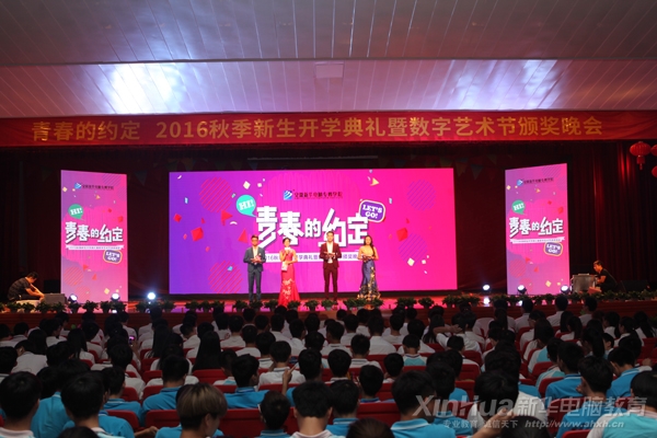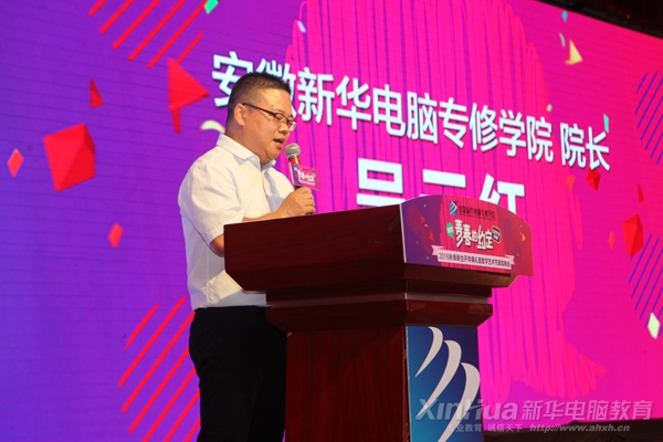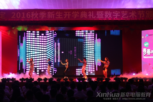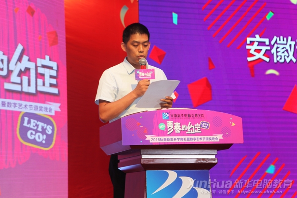 晚会在热情昂扬的开场视频和精彩吸睛的开场舞中拉开序幕,之后,安徽新华电脑专修学院院长吴元红上台致辞,他表示:安徽新华电脑专修学院是安徽省办学水平最高的互联网学院,国家信息化教育全国示范基地,中国 IT 教育十大影响力品牌院校。学院主要从事计算机应用、网络技术及软件开发的系统教育,共开设有云开发软件工程师、影视动漫游戏设计师、演艺主播主持等20多个长短期专业,面向未来安徽新华电脑专修学院将继续秉持着“兴教报国”的办学宗旨不断升级,为做“中国最好的职业教育”而不懈努力。最后,吴院长宣布“青春的约定”安徽新华电脑专修学院2016秋季新生开学典礼暨数字艺术节颁奖晚会正式开始!