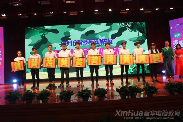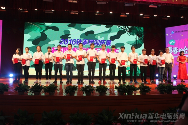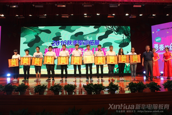 颁奖仪式在动漫F4《真心英雄》的余音以及新生《绿旋风》舞蹈的激昂中开始,新生们在学院的青春起源于那一抹迷彩色,犹记得军训的第一天,或许队伍没有那么整齐,同学们却能一脸坚毅,努力的完成每一个动作,也许他们的动作还不那么完美,但力求每一动作都在努力学习,这样一群青春激情、帅气无敌的身影为新华蒙上了一层正气。今天正是为这些屹立不倒的身影颁发勋章的日子。军训优秀班级,军训优秀宿舍,军训优秀学员。每一个获奖的新生都以最崇高的敬意接收领导们的嘉奖的祝福。