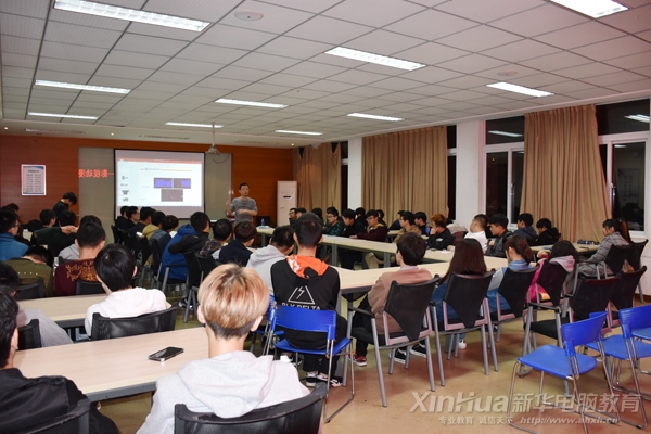 袁一老师的讲座从“为什么选择新华”开始,围绕电影实拍与制作、2D、3D技术的发展展开,详细讲解了前期场景道具及渲染准备,通过相关案例的讲解生动地向大家展示影视镜头中那些大家不清楚的细节。袁一老师在讲座中更是鼓励参与讲座的同学们自己动手制作完成一段属于自己的短片。