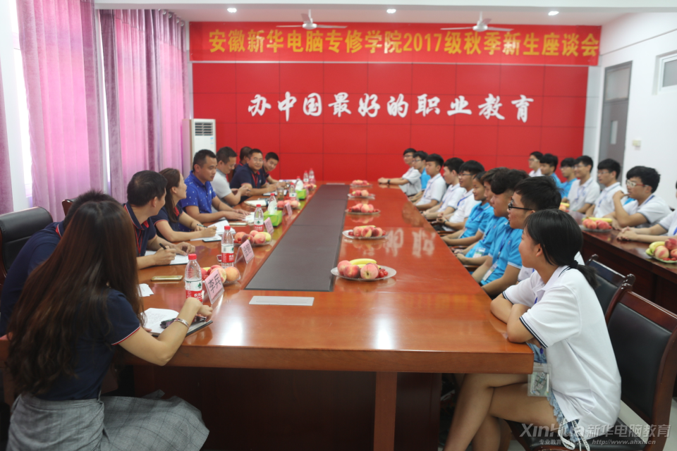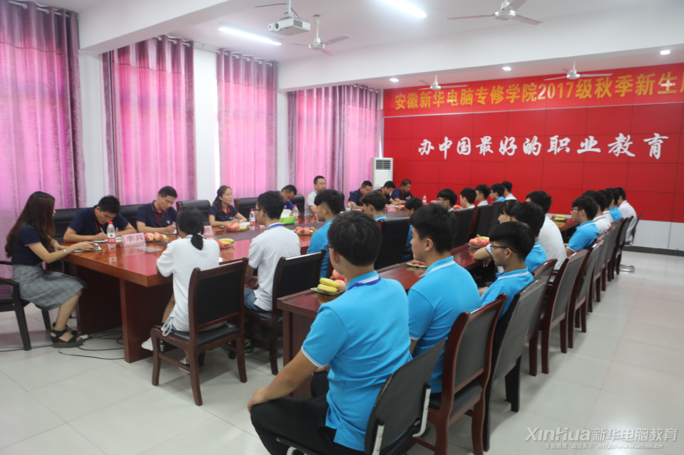 安徽新华电脑专修学院院长助理胡德俊、创就业指导中心主任胡飞亚、学生处主任盛文彬,并由学生处杨老师主持了本次新生见面会。