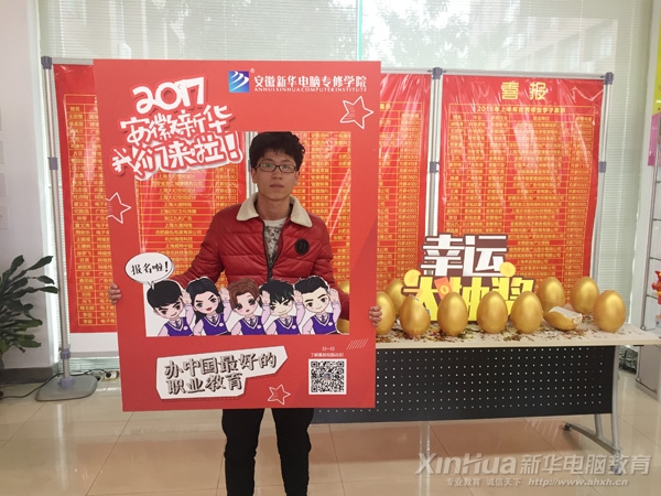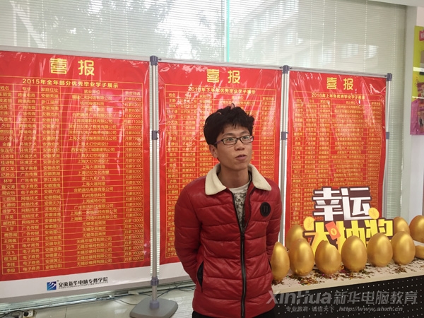 “我有一个堂哥也在新华电脑学电脑,后来哥哥也在网上帮我筛选和对比之后,推荐我来了安徽新华电脑专修学院,虽然离家远了些,但是只要能学到东西,只要学校我满意,那一切都是值得的,现在我很庆幸来到了这里。”干净阳光的韩洪波笑着说道。
