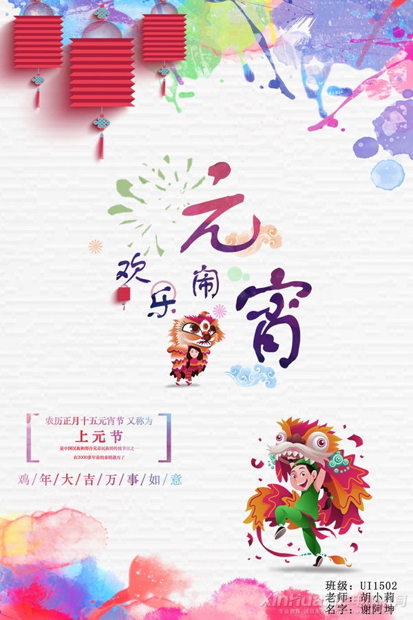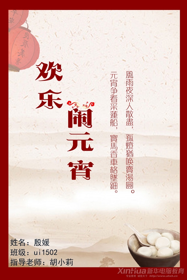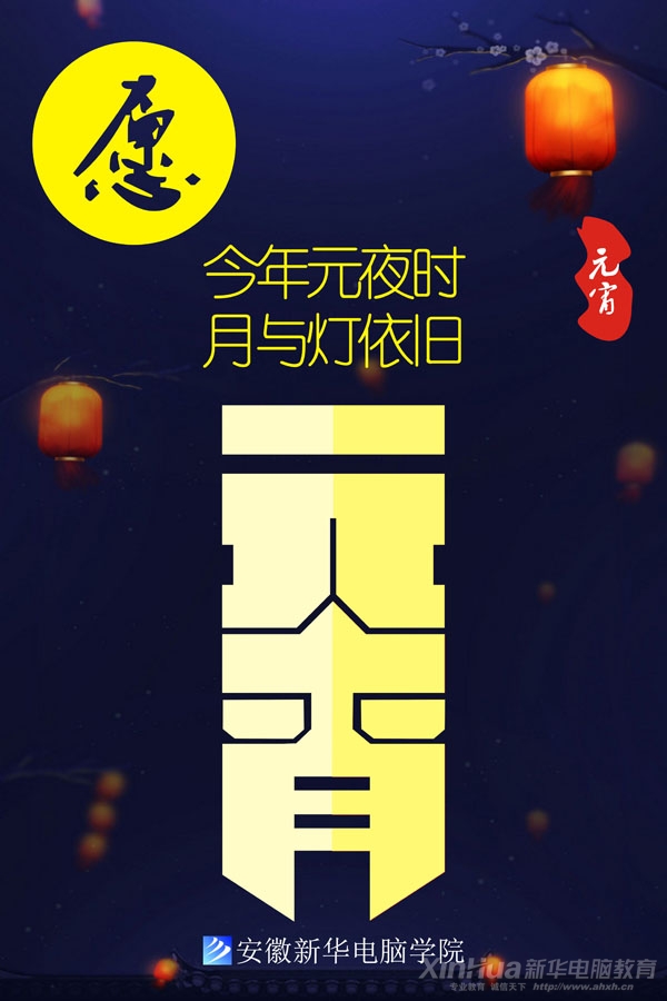 而安徽新华电脑专修学院作为互联网教育专家,对于传统元宵佳节自然也是不可错过,除了灯笼DIY、元宵节猜灯谜等活动之外,我们学富五车的新媒体UI设计专业的同学们还倾心设计了丰富多彩的元宵节系列海报,跟着小编来看看吧!
