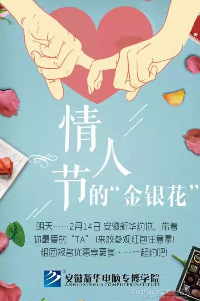 2月14日,安徽新华约你,带同学、带亲戚、带基友、带闺蜜、带着你最爱的“TA”来学校参观就可以红包任意拿!组团报名优惠享更多……一起约吧!今天美女学姐直播校园,用最专业的视角带你玩转校园!