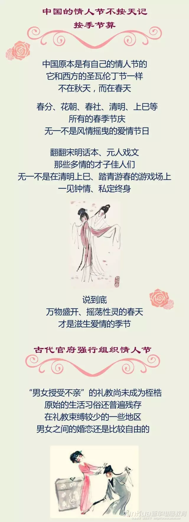 2月14日 Valentine’s Day 传统情人节。这是西方正宗的情人节,情侣间互相馈赠礼物,用以表达爱意或友好。其实,古人也过“情人节”2月14日是西方情人节,也就是圣瓦伦丁节,而说到中国的情人节,人们首先想到的是七夕佳节,实际上,七夕和情人节没有一丝关系,我们中国也有自己的情人节呦!