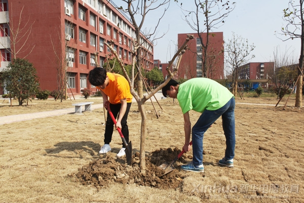 为了响应植树节,唤醒校园角落经历严冬的一抹抹绿色。安徽新华电脑专修学院的同学们穿上了青春洋溢的校园文化衫,来到了校园的每个角落,用清新的树苗向春天寄去了第一封问候信。同学们的铁锨、水桶以及成捆成捆的各种树苗,舞动在校园的各个角落,栽种下自己心底真实的希望与追求。