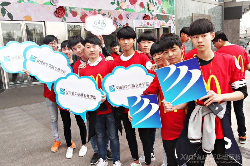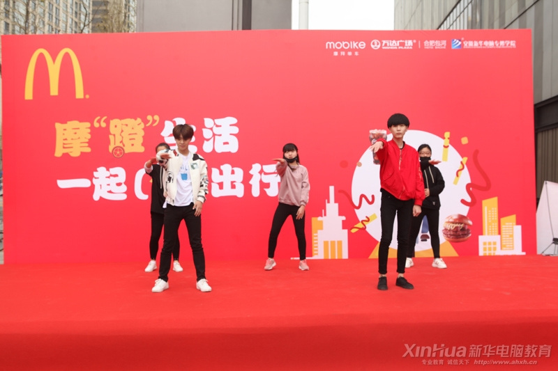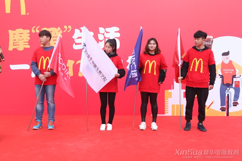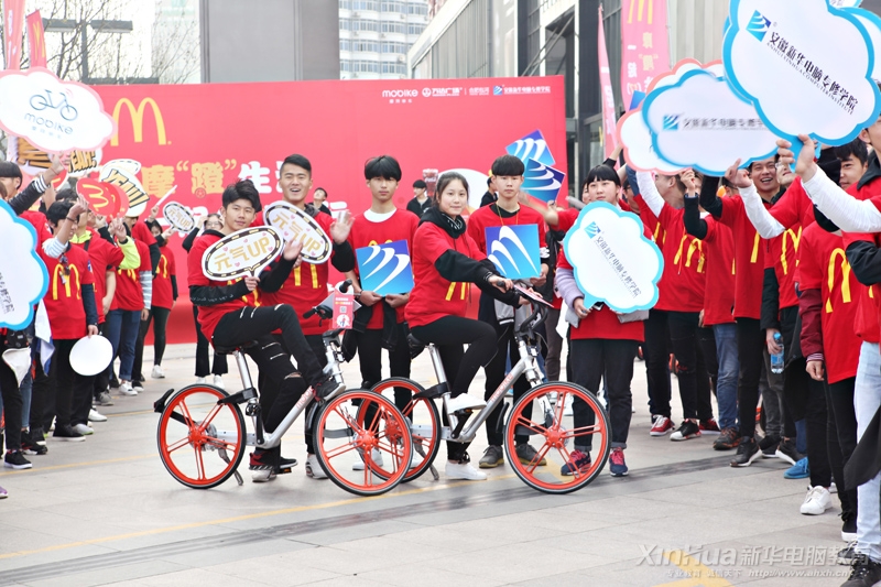 活力、青春、品质是本次活动联合主办方安徽新华电脑专修学院和摩拜、麦当劳的共性,正因如此,本场活动也吸引了合肥电视台、安徽生活网、合肥论坛、市场星报等各媒体朋友们的大力支持。麦当劳领导沉稳大方的致辞,新华学子悦耳好听的歌曲、青春学子酷炫动感的舞蹈将启动仪式推向高潮。之后本次活动的四支队伍“春田”华华骑行队、“达子”的春天骑行队、橙轮“摩拜”骑行队、黄金“麦萌”骑行队的队长们上台立下青春豪言,揣着满怀的斗志,贴上上自己的分队臂贴,拿上本次骑行的运动装备。准备出发!