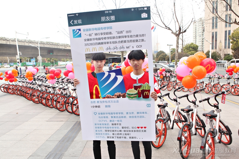 安徽新华电脑专修学院和摩拜、麦当劳包河万达店联合举办的“摩蹬生活。一起骑行”青春主题骑行活动,骑行是最nice的选择,美景会在车轮下一点点展开,来和新华学子一起见证一场绚丽的突围。