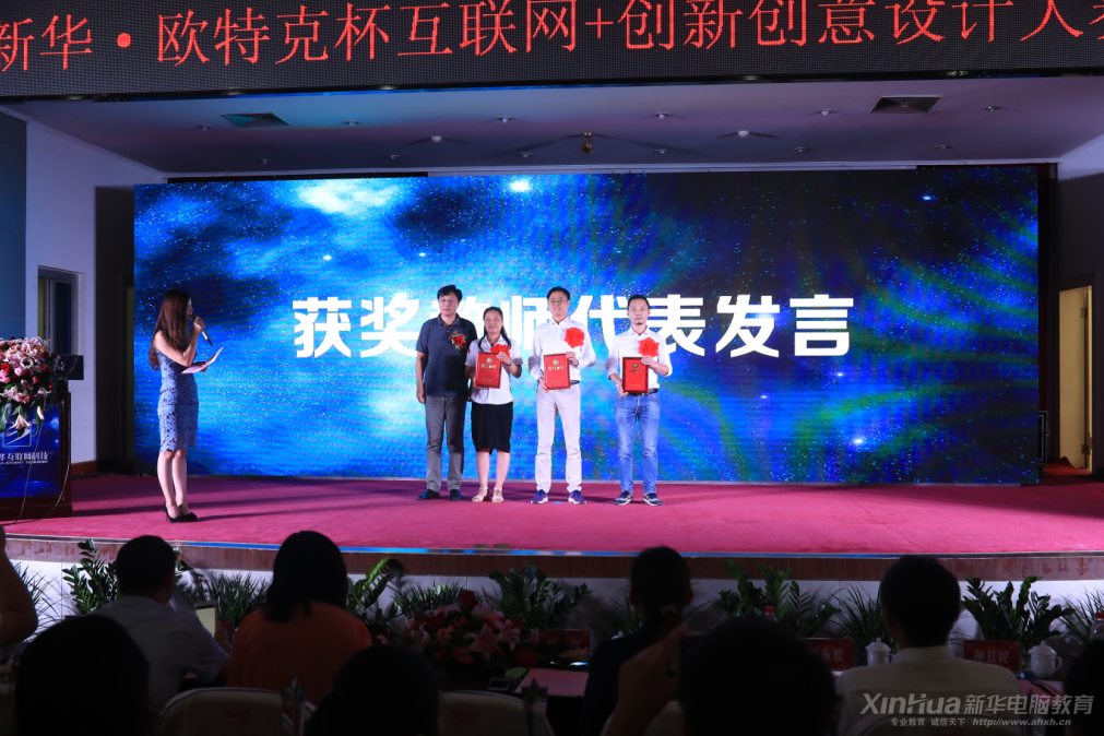 优秀指导老师代表发言环节,安徽新华电脑专修学院设计学科带头人单东军老师表示:竞赛的重要性是不言而喻的。对于老师来说,我们的教学改革如何推进, 我们如何培养与社会无缝对接的专业设计人才,都从这样高规格的专业竞赛中获益匪浅;对于学生而言,专业竞赛是培养综合技术素养的重要途径,也有利于提高同学们的创新思维和意志品质,有利于培养和提高同学们的毕业就业应征力。专业竞赛的成果有师生们共同获奖的喜悦,也有努力拼搏、积极训练的汗水。我们作为新华互联网科技的一名专业教师,我作为安徽新华电脑专修学院的一名学科带头人,我们也深感肩上的责任重大,职业教育更是任重而道远,IT时代的到来,互联网技术日新月异,我们教师团队必须更加努力,真正结合专业实践,创新教学理念,真正践行新华人“互联Ÿ通达Ÿ修身Ÿ精技”的教学精神!