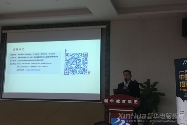 而这份找不到工作的苦恼貌似从来没有影响到安徽新华电脑专修学院的学子。近日,在新华电脑学院五号楼学术报告厅又迎来了一群优秀的企业来进行宣讲招聘会。来宣讲的企业涉及社会行业的各行各面。现场的同学们也表现出来了对于这些企业的欢迎和期待。
