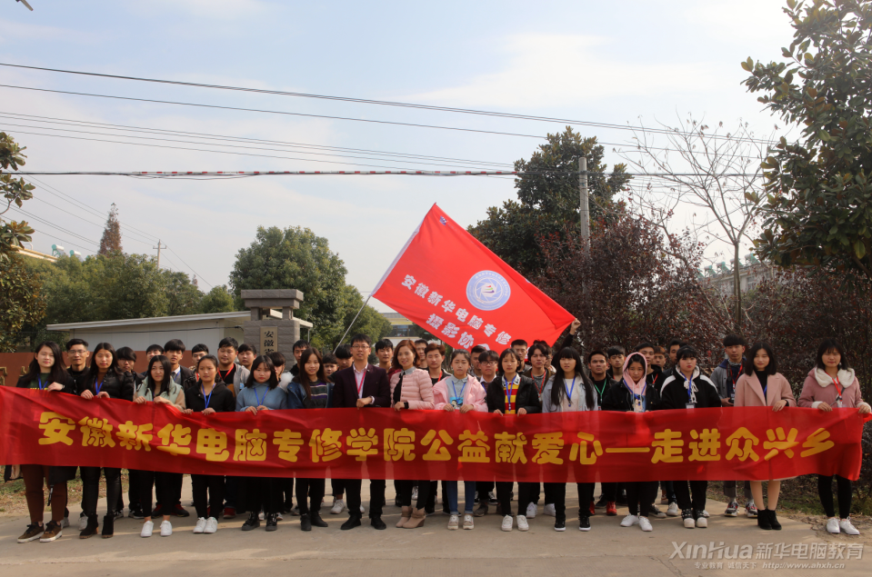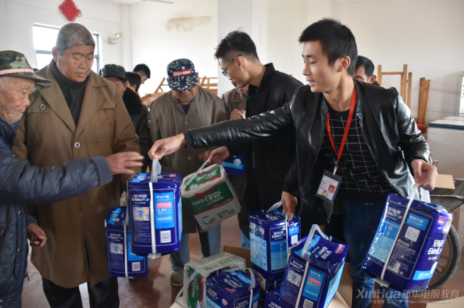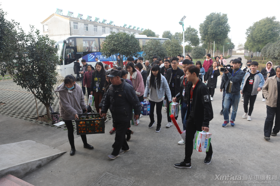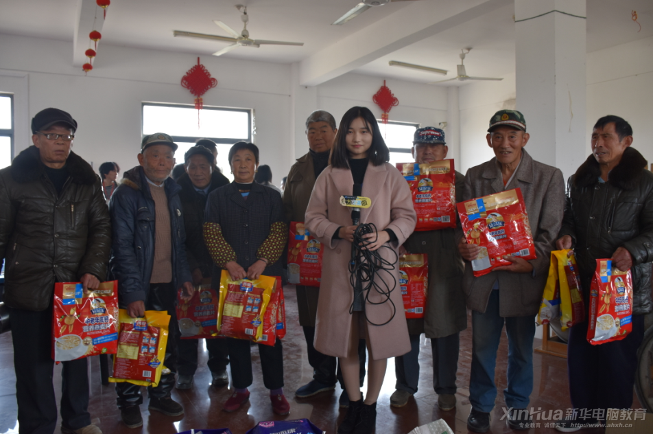 11月28日上午,安徽新华电脑专修学院的校园大巴载着宣传企划、摄影协会、微影社,广播站等多个社团的学子和老师们踏上了肥东县众兴乡的送温暖之行。水果、牛奶、面包、成人尿不湿...礼物堆满了大巴车,也堆满了老人们的心。