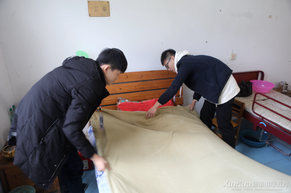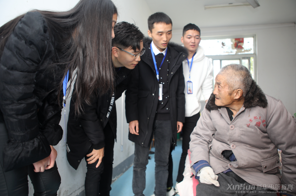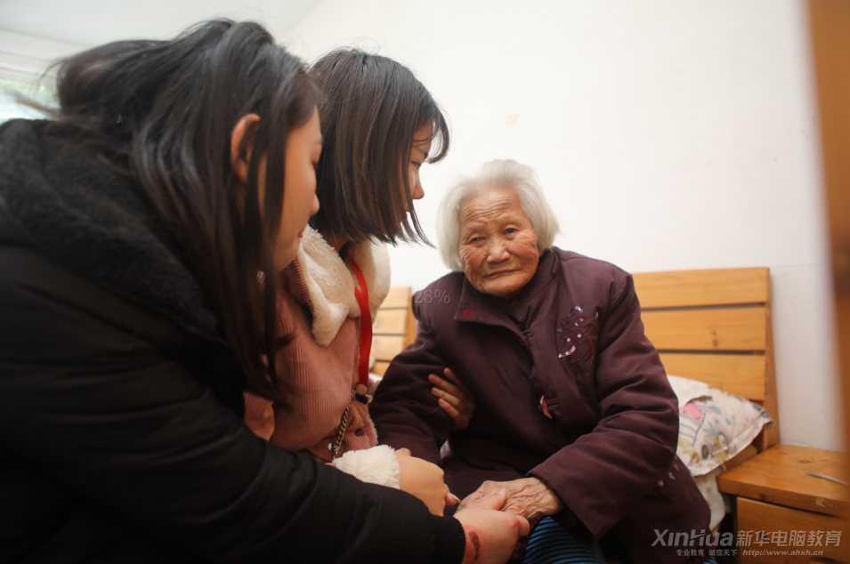 在光彩亮丽的城市背后有一块淳朴的地方,有这样的一群人,他们没有子女没有牵挂,在城市的边缘依靠政府补贴抱团取暖,他们的房间充斥着老去的气息,他们的双手布满了生活的痕迹。这就是安徽新华电脑专修学院的学子们今天送温暖的地方——肥东县众兴乡敬老院。