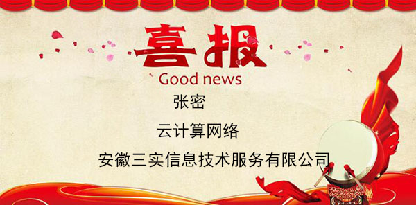 恭喜我院云计算网络专业的张密同学被安徽三实信息技术服务有限公司录用,月薪4000元!!!