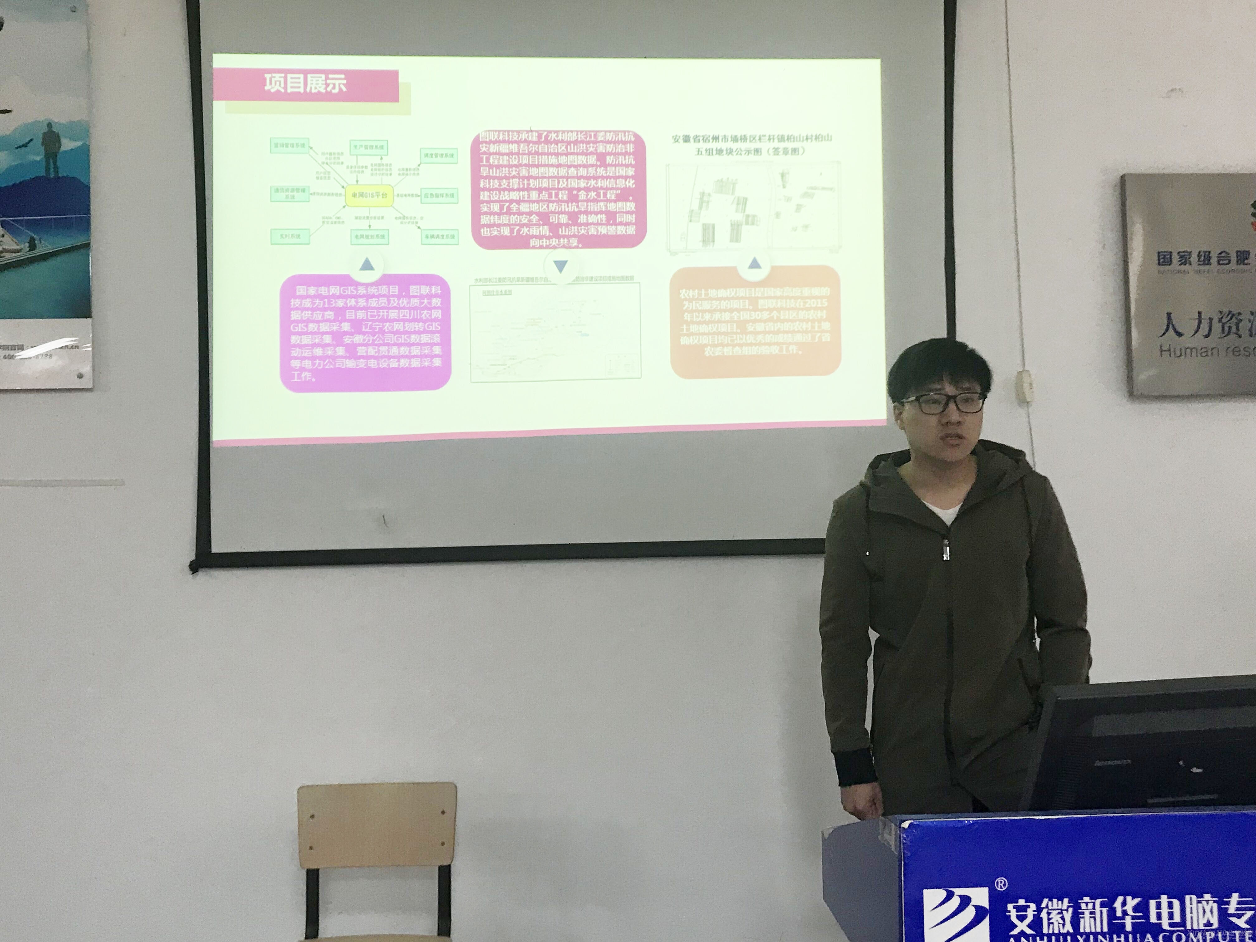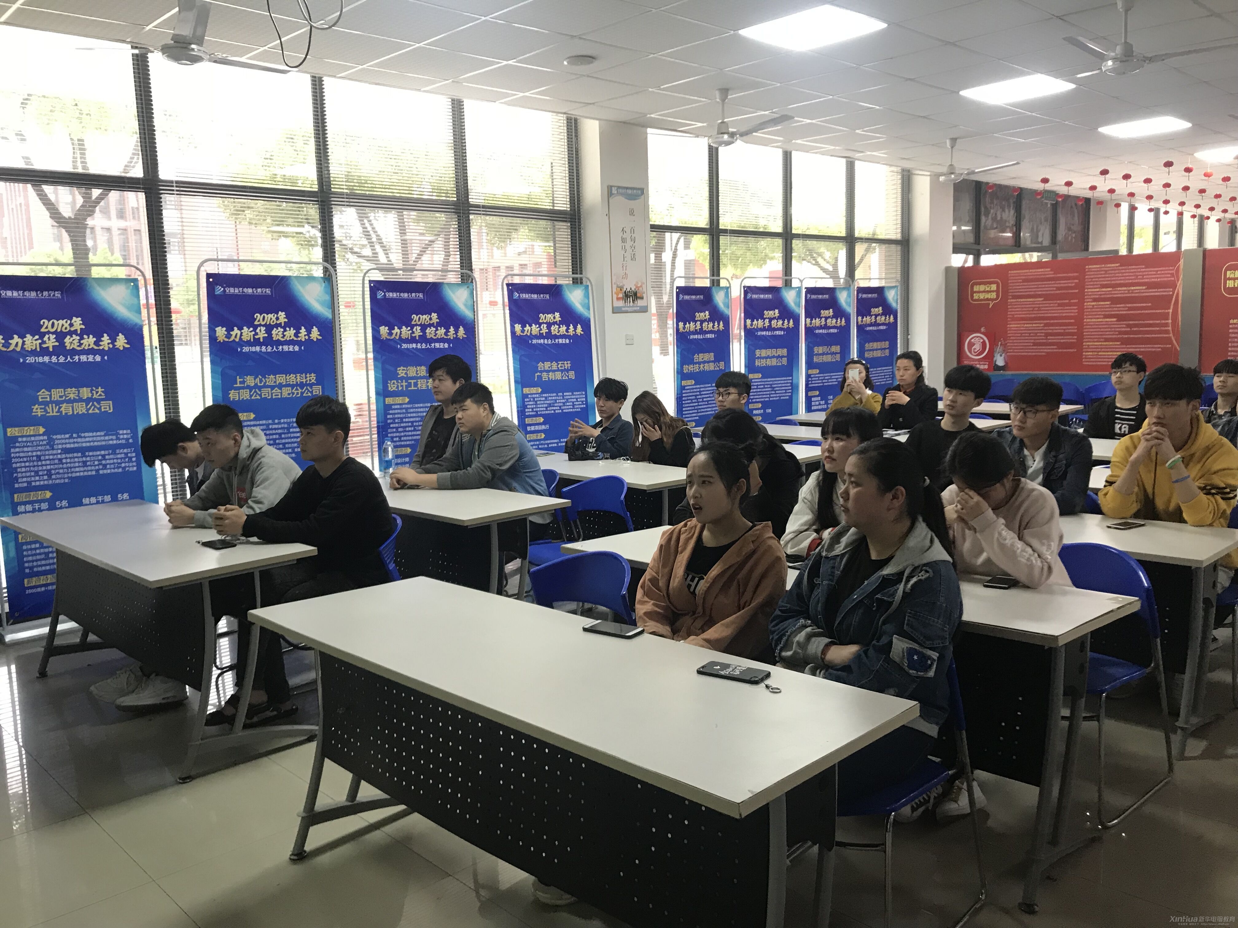 2018年4月13日上午,安徽图联科技有限公司来我院举行了校园宣讲会,我校环境艺术专业和电子商务专业毕业生齐聚创就业指导中心,聆听了来自安徽图联科技有限公司的企业宣讲,与企业进行了一次亲密接触。本次活动由我院创就业指导中心主管陈亚东主持,安徽图联科技有限公司的相关领导应邀出席。