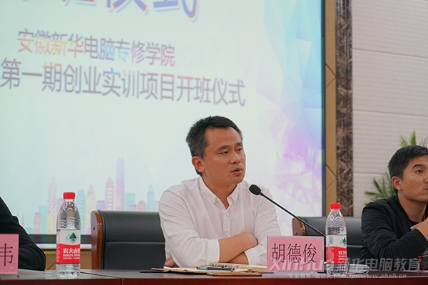 开班典礼的最后,安徽新华电脑专修学院院长助理胡德俊做指导讲话。胡德俊助理希望各位同学在今后的创就业模拟实训学习中,不辜负学院领导和国家政府给予的厚望,从小事开始,从虚心学习开始,端正态度,,明确目标,努力实践。未来的你一定不会比任何人差。无惧风暴,又何惧人生?祝大家圆满完成本次培训,努力做更好的自己。