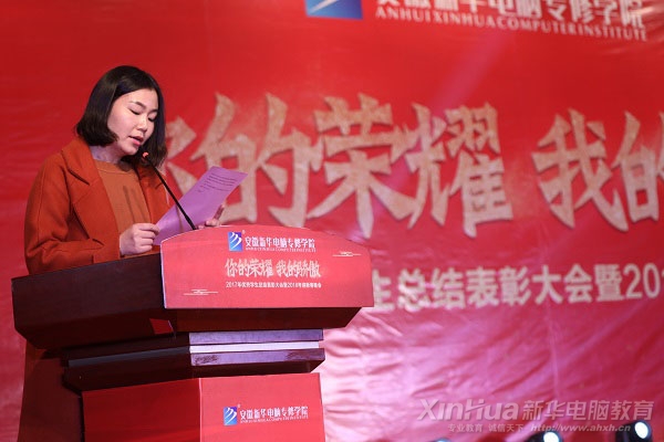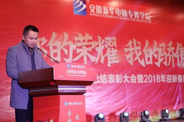 精彩的演出之后安徽新华电脑专修学院院长助理胡助理宣讲本次优秀学子以及优秀社团,而这些学子们无一不展现着新华电脑专修学院优秀的风采。