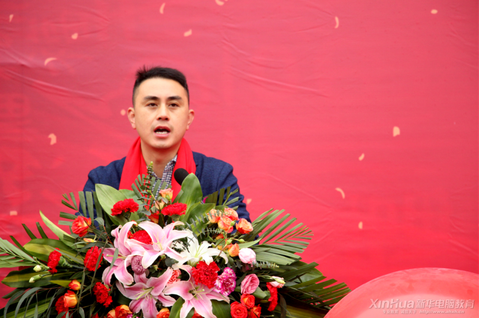 胡助的致辞赢得了阵阵掌声,之后新华教育集团创就业部部长助理杨义成致辞。杨助理首先向来参加启动仪式的嘉宾和企业表达了热烈的欢迎。杨助理提到:集团成立30年来,积极响应国家的号召,始终坚持以服务经济发展,满足社会需求为导向,积极贯彻职业教育就是就业教育,面向社会开门办教育的教育理念。不断加大职业教育的广度和深度,并与全国各行业的优秀企业开展了不同内容、形式、层面的合作。举办本次交流会,一是助力广大新华学子成功就业,二是服务广大合作企业的人才需求,更是搭建了企业与学校的人才交流平台,实现校企联动,优势互补,资源共享,共同发展。