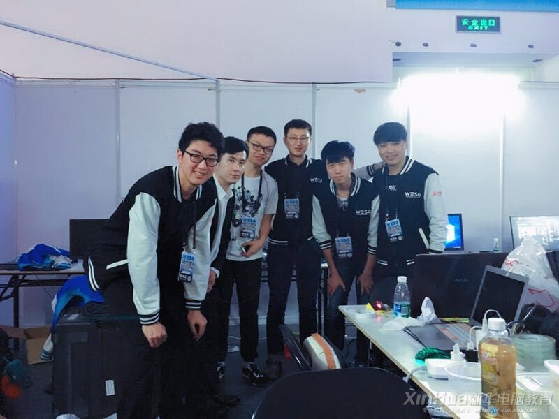 但是你知道吗?这场世界级电竞总决赛,裁判是安徽新华的老师和学生!在本届WESG全球总决赛里,安徽新华电脑专修学院电竞专业老师高杨、鲁子毅以及电竞专业余文超同学与来自北京大学的姜骁、复旦大学的刘欣慰同学组成团队,一起担任总决赛项目的裁判、导播等工作。这也是安徽新华的师生们第二次担起这项重任!据悉,决赛现场前中国著名CS职业选手,现imbatv金牌解说xixi老师来到后台参观小组工作,给大家的工作提出非常中肯的意见和鼓励。