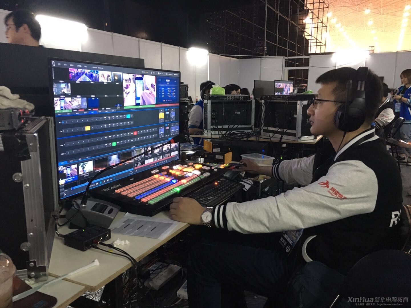 新华电竞冠军导师鲁子毅 正在操作WESG总决赛舞台导播机器