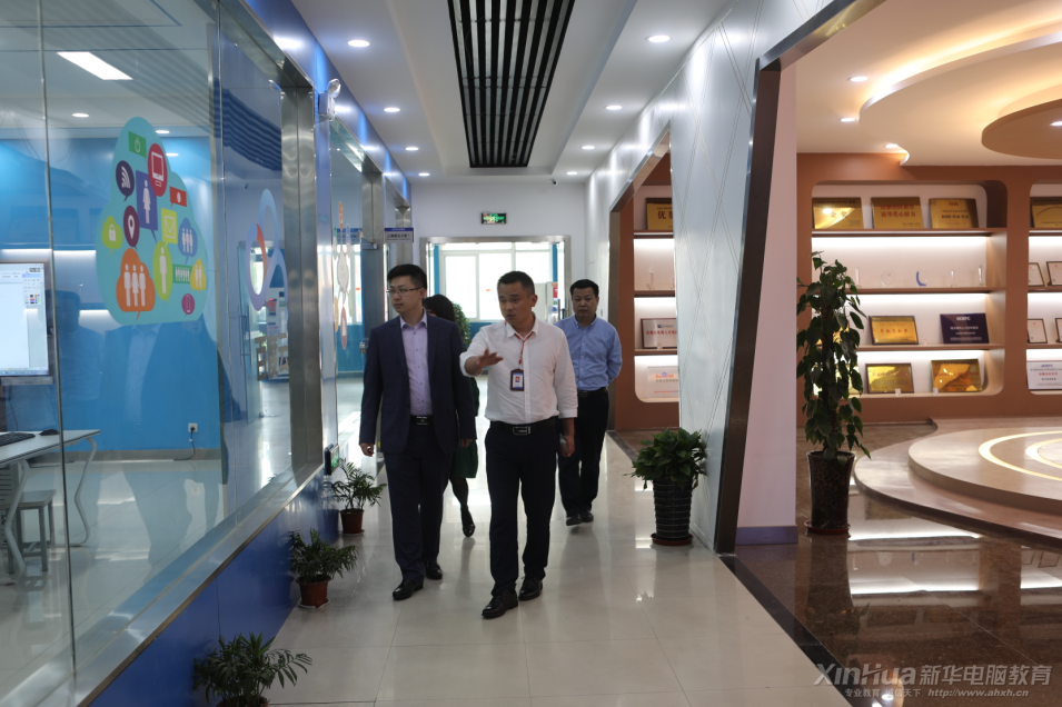 随后,在学院各位领导的引导和陪同下,来宾实地走访参观了学院校史馆、科技营展厅、电子商务等创业实训基地。深入创业据点,亲身了解安徽新华电脑专修学院的课程体系和教育模式,以及学院学生和老师的学习,创业等方面的想法。双方就我院学生的教学模式、专业设置、教师交流,合作办学项目等问题进行了交流并达成诸多共识。