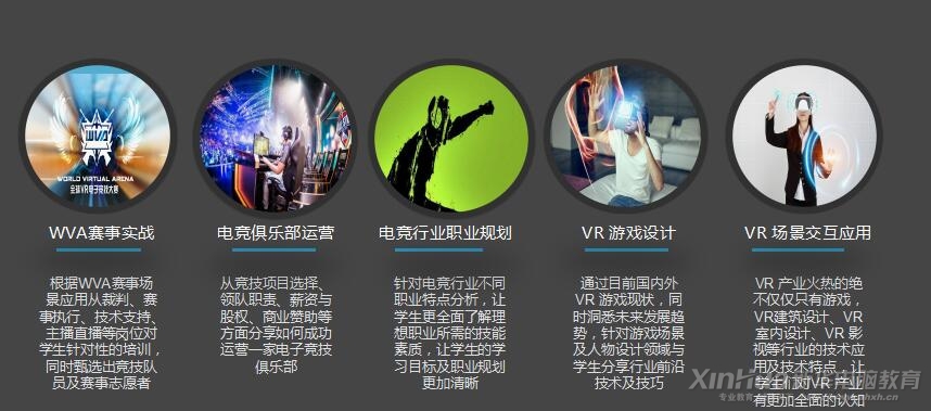 新华互联网科技课程研发中心邀请来自全球一线电子竞技大咖、全国一线俱乐部、斗鱼直播等游戏主播组成的专业研发团队,保证课程领先性、实用性;金牌专业讲师均来自企业的一线总监、俱乐部经理、国家级赛事裁判等;还邀请国内外一线电竞大咖,青春电竞偶像参与授课;价值20000元的实战操作机人手一台,全真项目演练,VR+课堂,机器人互动课堂,寓教于乐更易学。