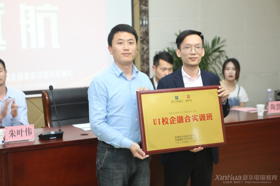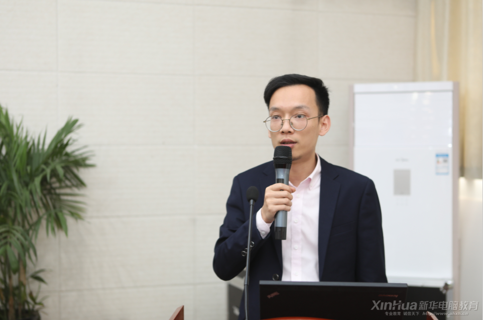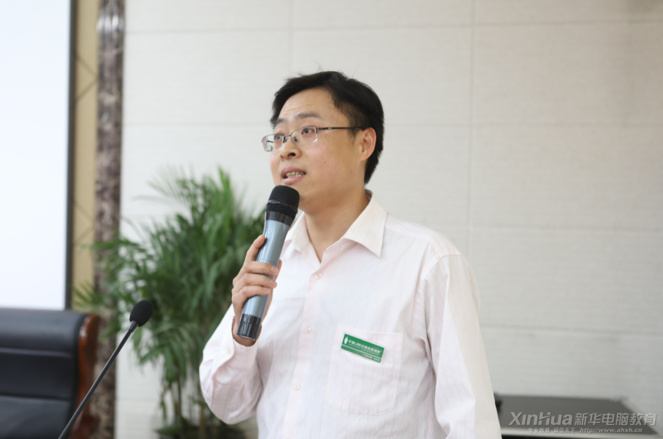 开班典礼的最后,安徽新华电脑专修学院教务处朱叶伟主任做项目实训指导讲话。朱叶伟主任希望各位同学以领导们的讲话为学习动力,不辜负学院领导和企业方领导给予的厚望,在今后的项目实训学习中,刻苦努力,互帮互助,不断进取,把自己真正培养成为一名会干活的UI设计师。