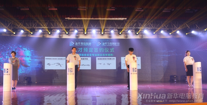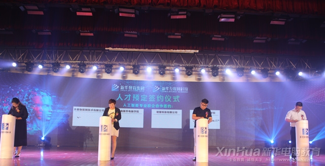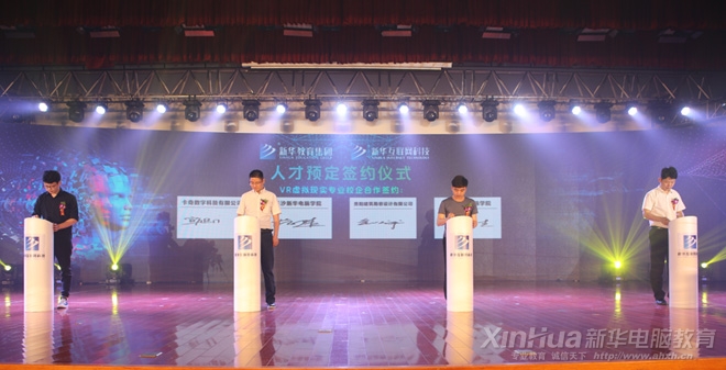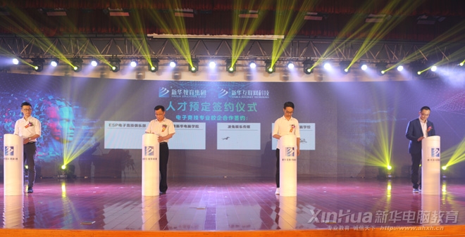 在发布会现场,ESP电子竞技俱乐部、凌兔娱乐传媒、丰唐物联网技术有限公司、珺馨科技有限公司、卡奇数字科技有限公司、贵阳建筑勘察设计有限公司、联想集团江西全联工程有限公司、新潮信息技术有限公司8家企业与新华互联网科技现场签订人才预定协议,并且现场大屏幕实时滚动这四大专业的百家企业的预定需求。