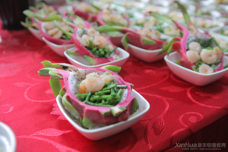 这些陈列的菜肴均明码标价,一般的蔬菜3元到5元一份,荤菜也不超过5元一份。前来参观的学生接踵摩肩,今年新报到的18级新生张同学说:“这些菜都不贵,想到学校能为我们着想,我感觉到很温馨,这样的节日还是第一次遇到。”