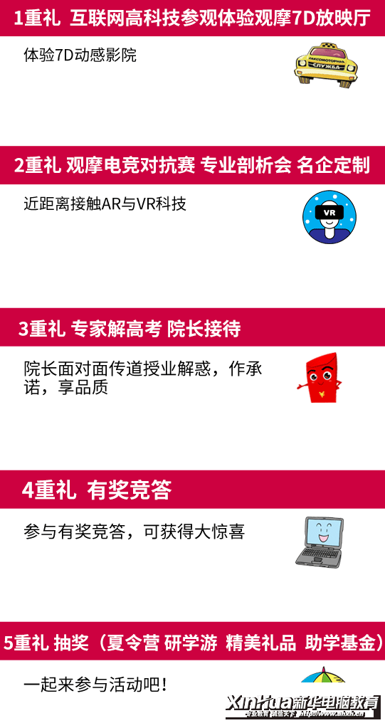 淅淅沥沥的雨点从一大早开始就没停过,风雨并没有阻挡学子们报名的热情,也没有减弱新华对学子们的热情和欢迎,整个咨询中心从上午到下午一直被热闹的氛围充斥着,咨询报名的学子络绎不绝。每一位到校的学子,都有专业的咨询师接待咨询,引导体验互联网高科技和7D设备,然后通过对学校的整体参观来了解学院的学习生活环境。